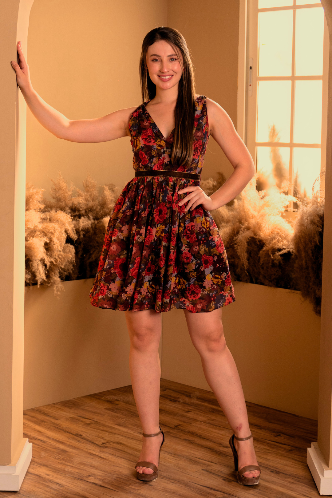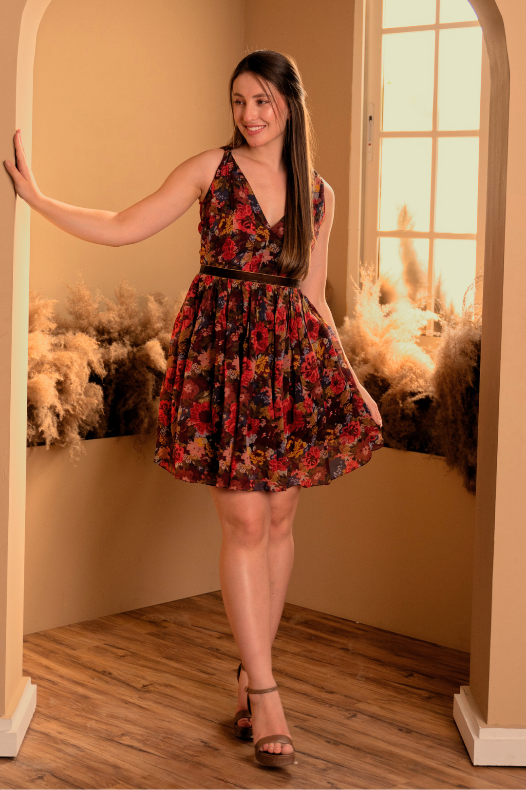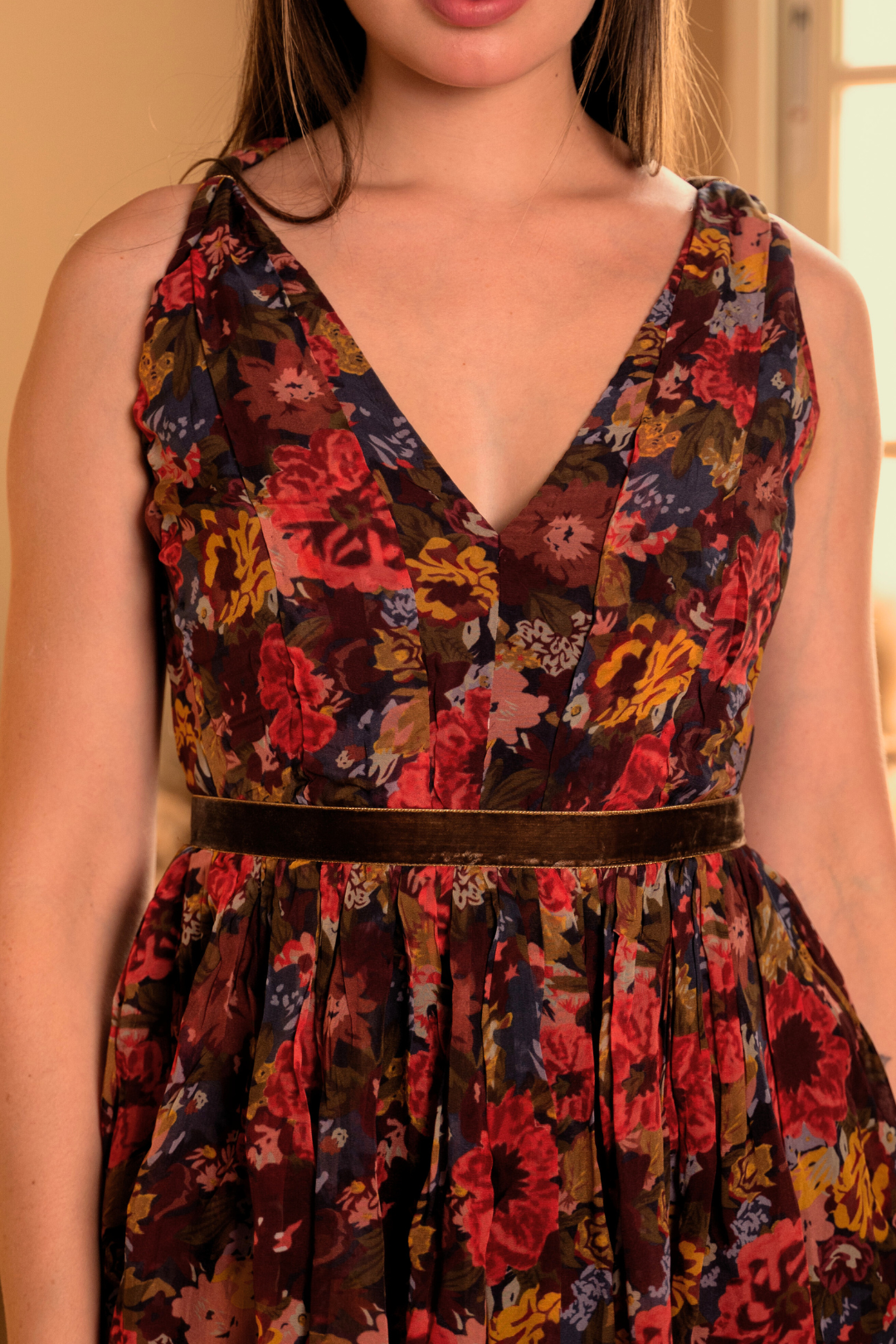 - Neckline & Straps: Stylish neckline with straps gathered and adorned with velvet ribbons for a chic look