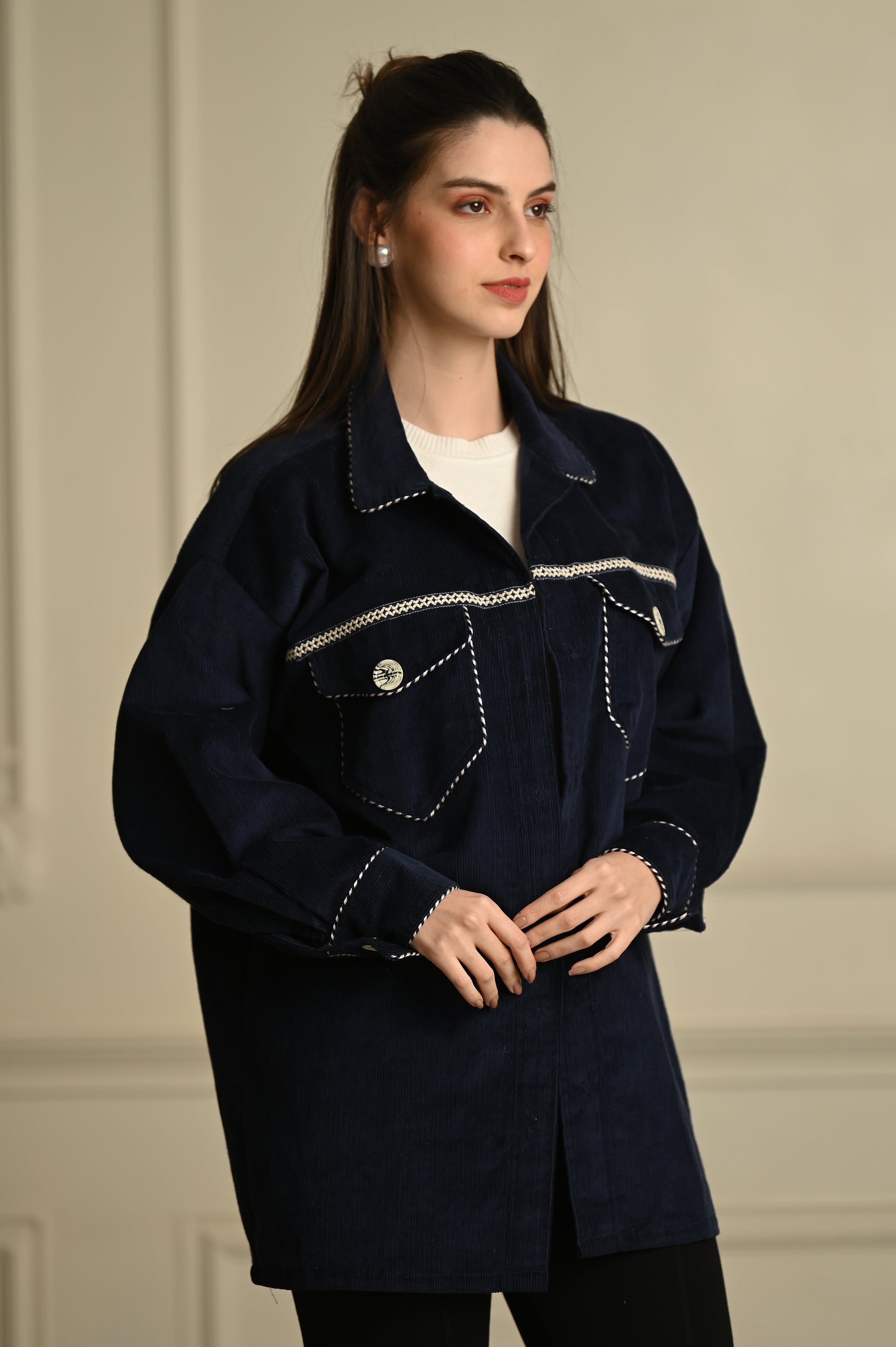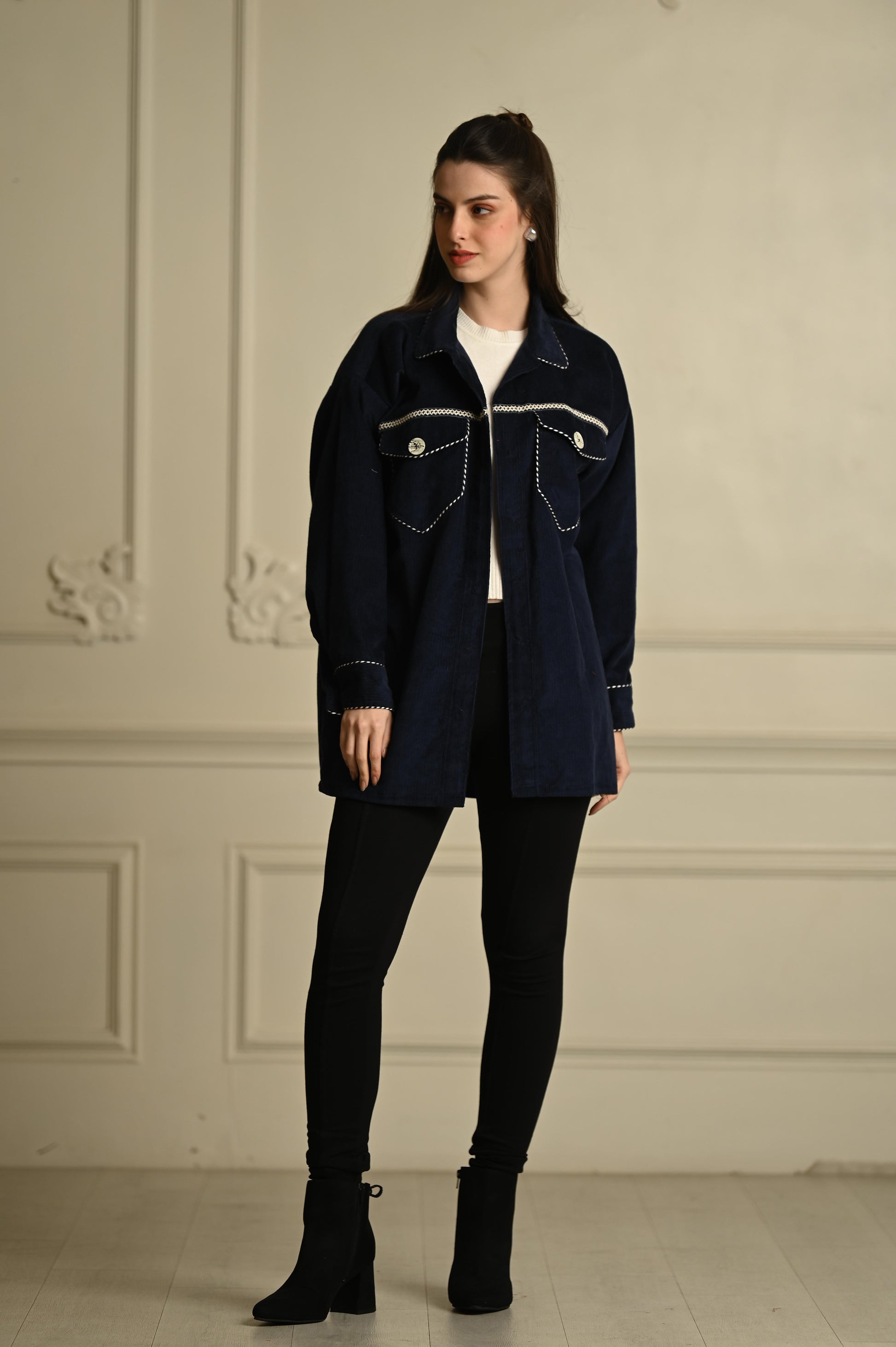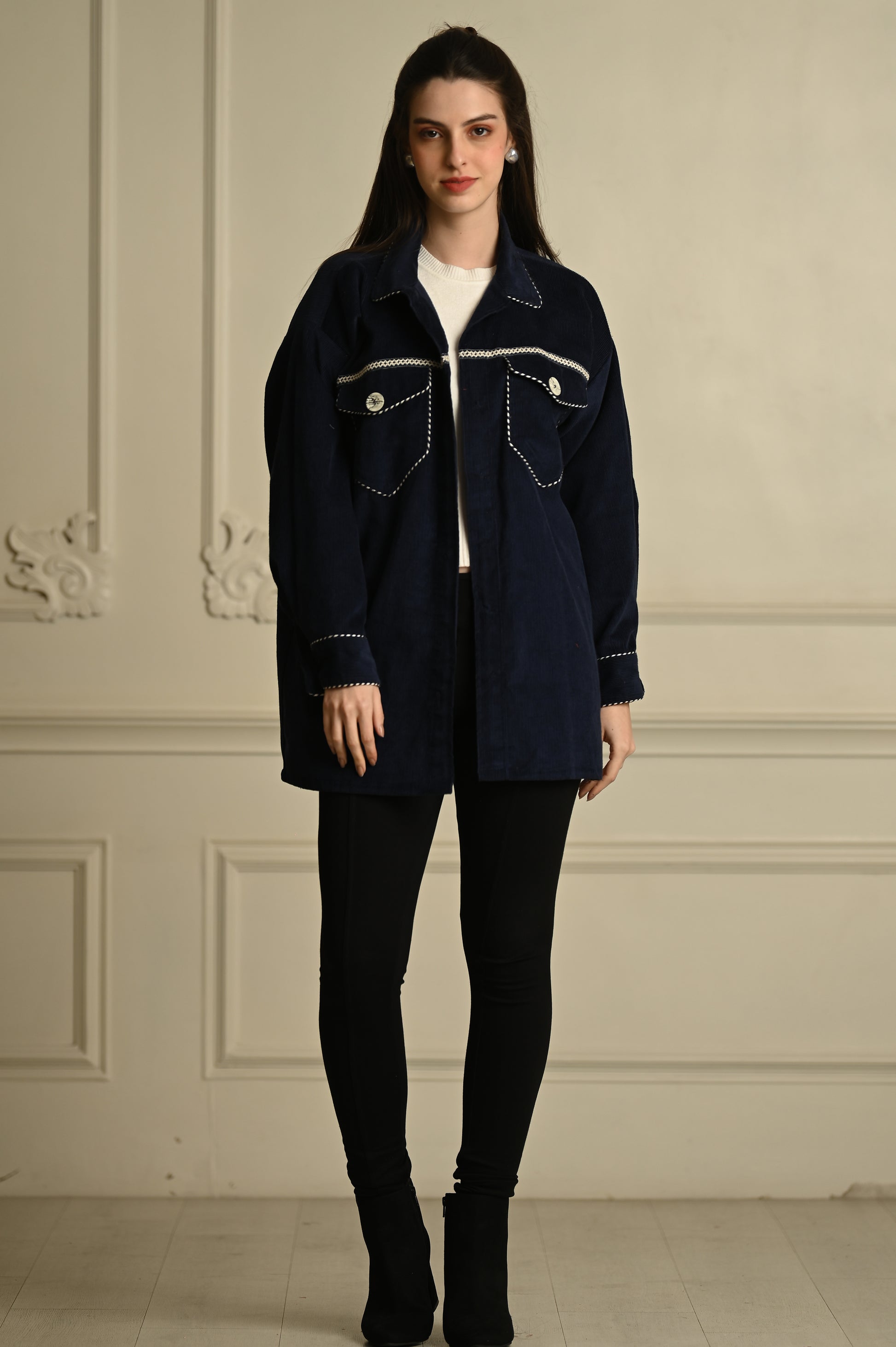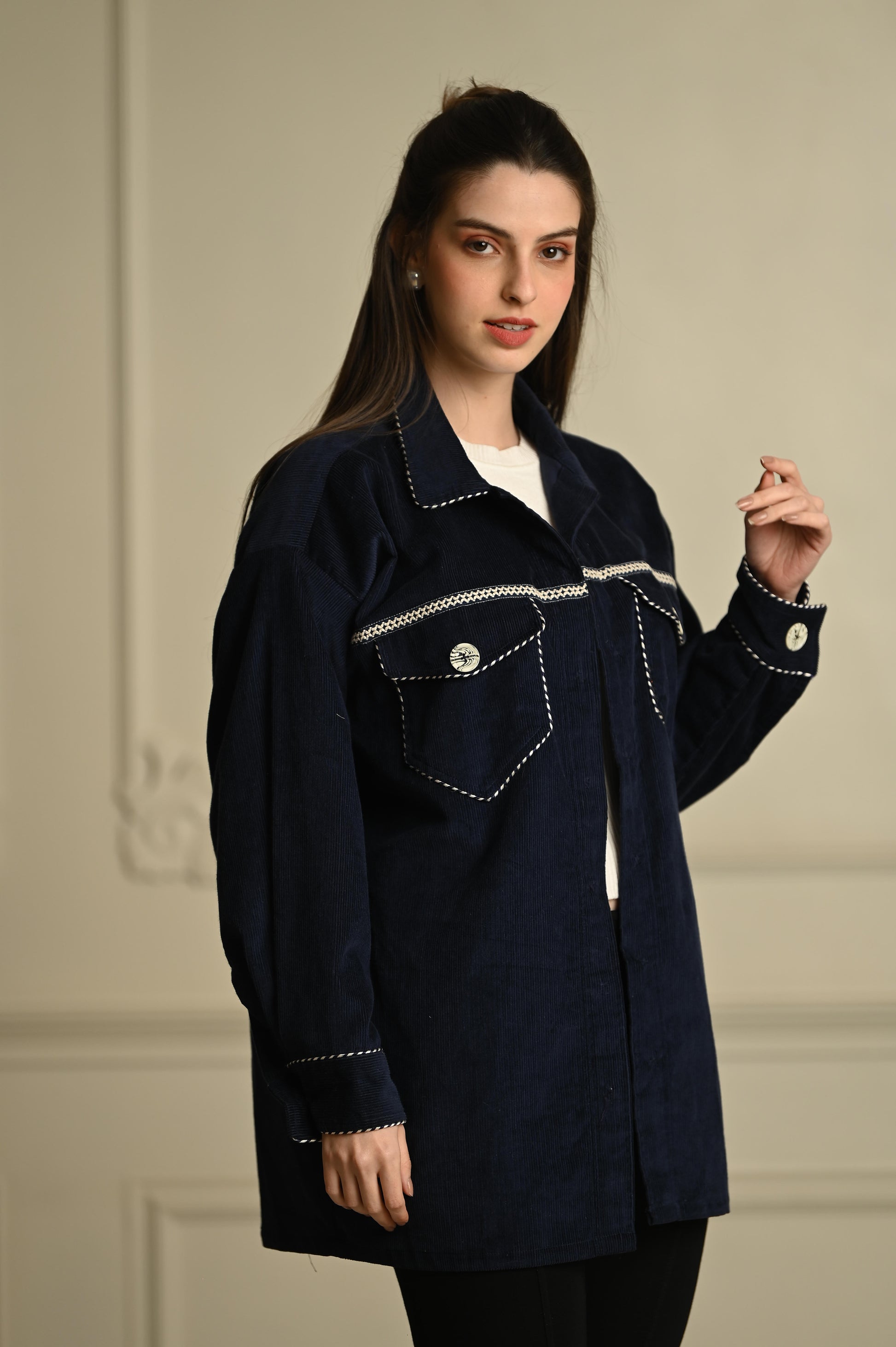 - **Blue Corduroy Shacket**