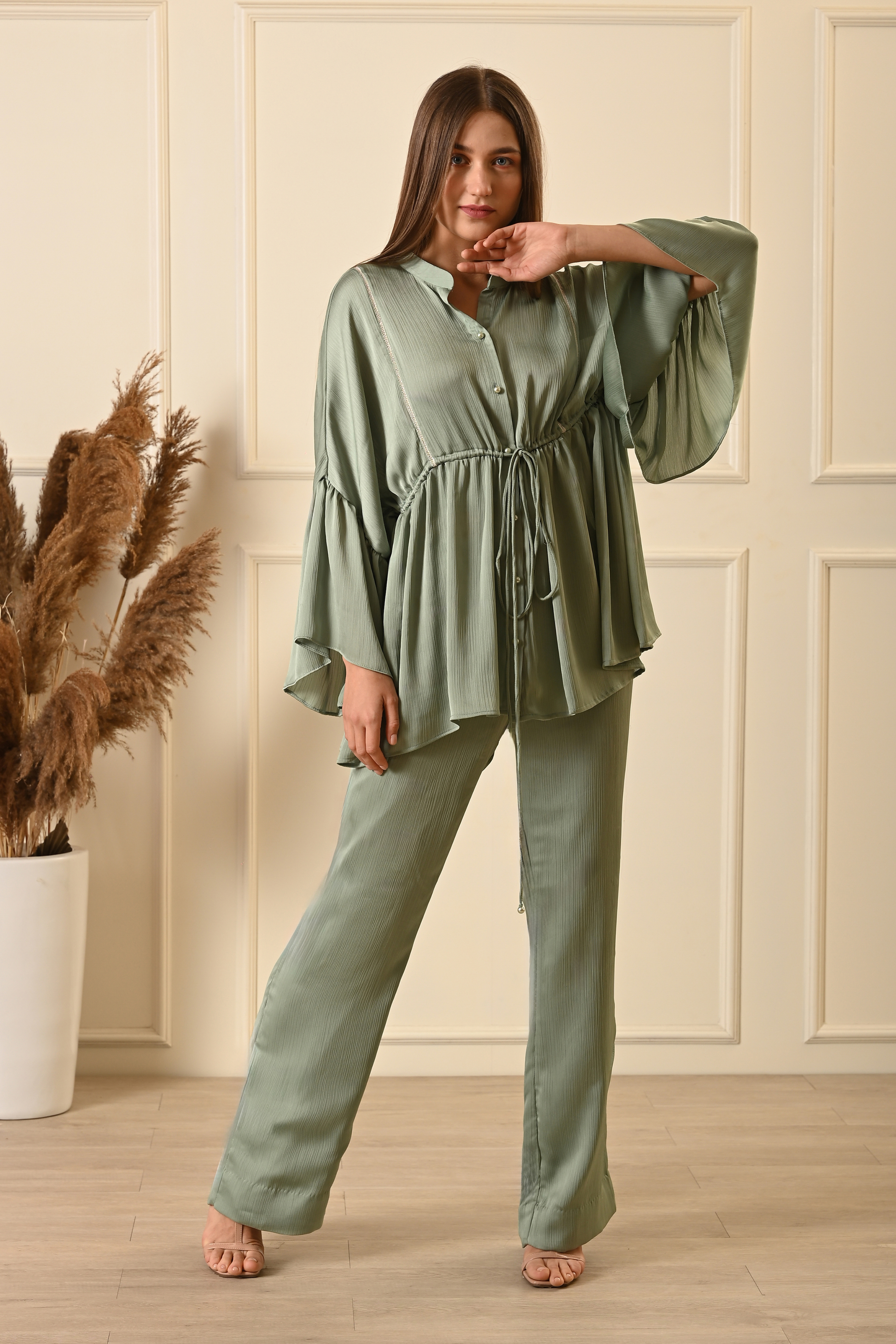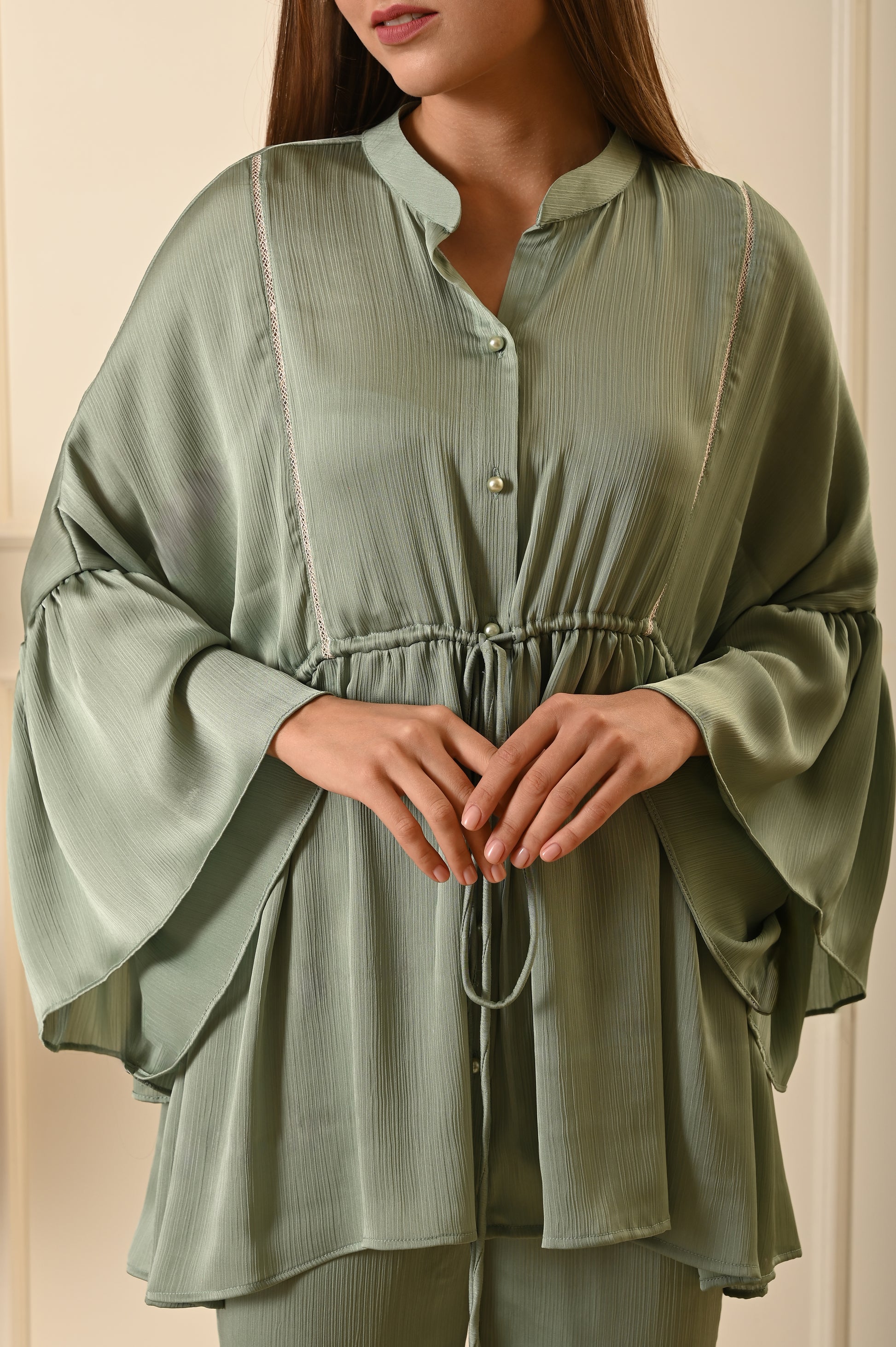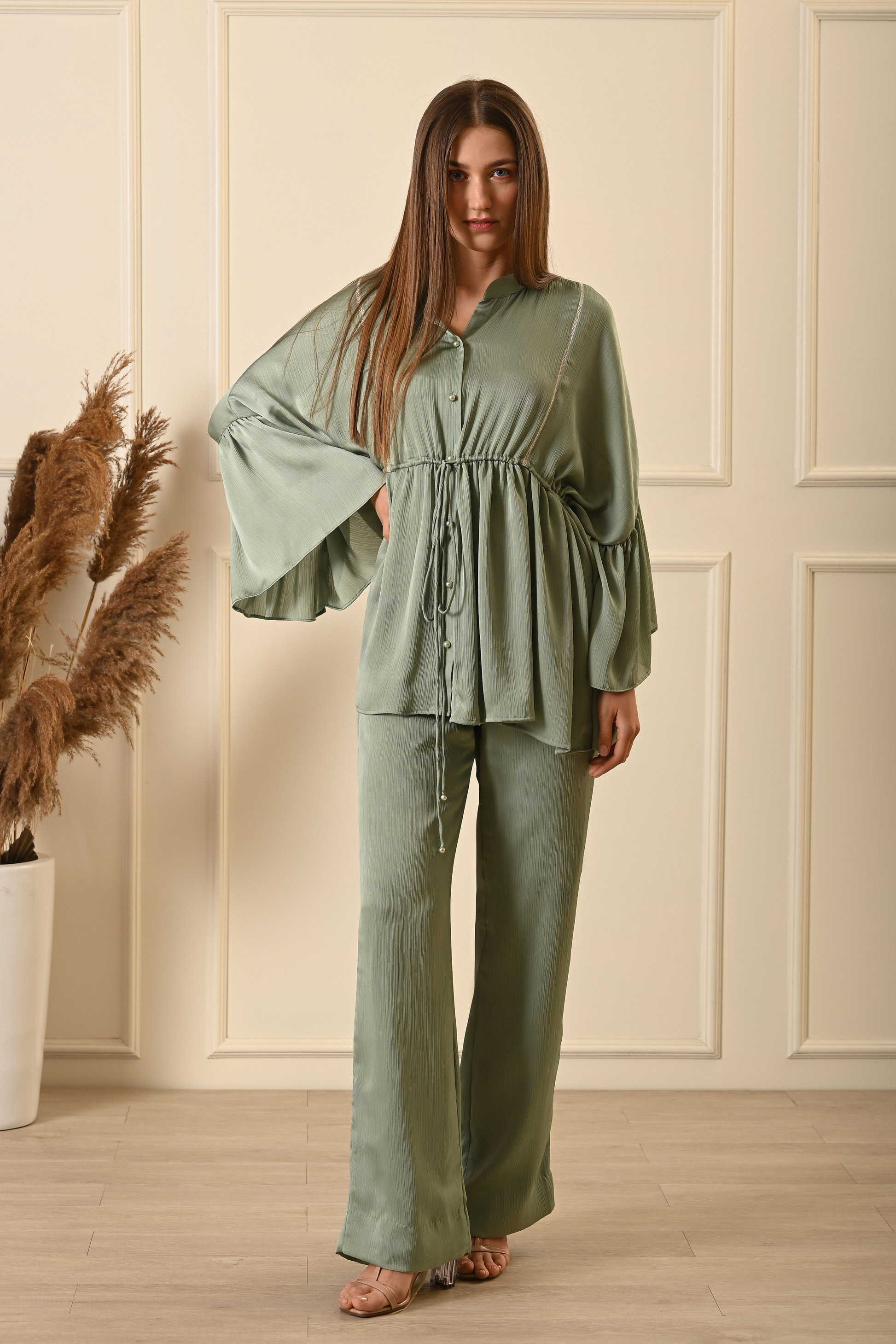 - Butterfly sleeves starting above the elbow for added FlarePants featuring half elastic and half belt for comfort.