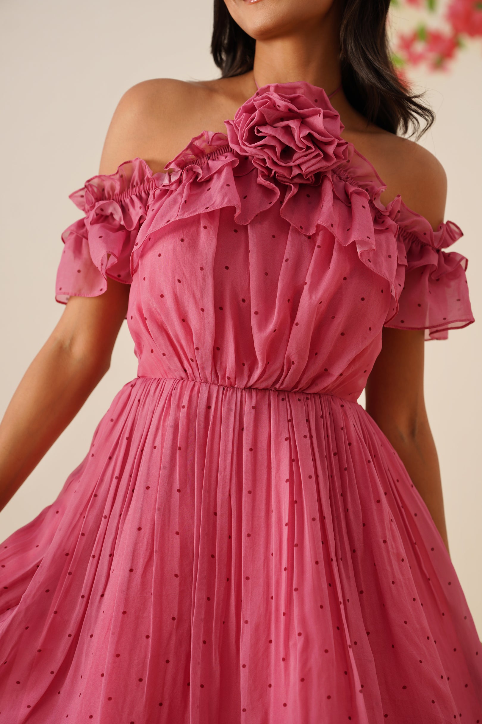 • Off-shoulder frill cover-up sleeves with elastic for an adjustable, feminine touch
