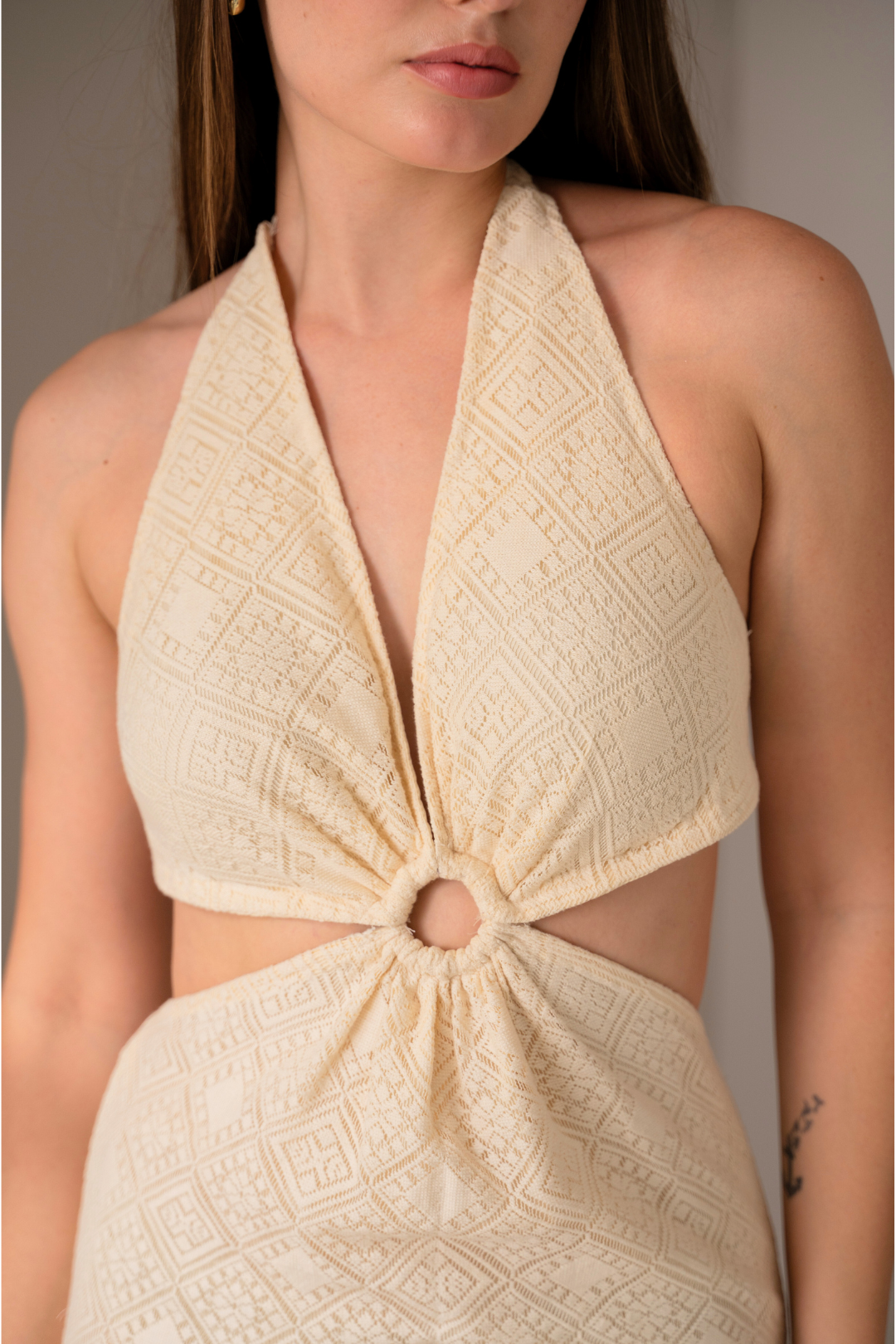 - Resort-Ready Cotton Crochet: This dress is crafted from breezy cotton crochet, perfect for stylish resort days.