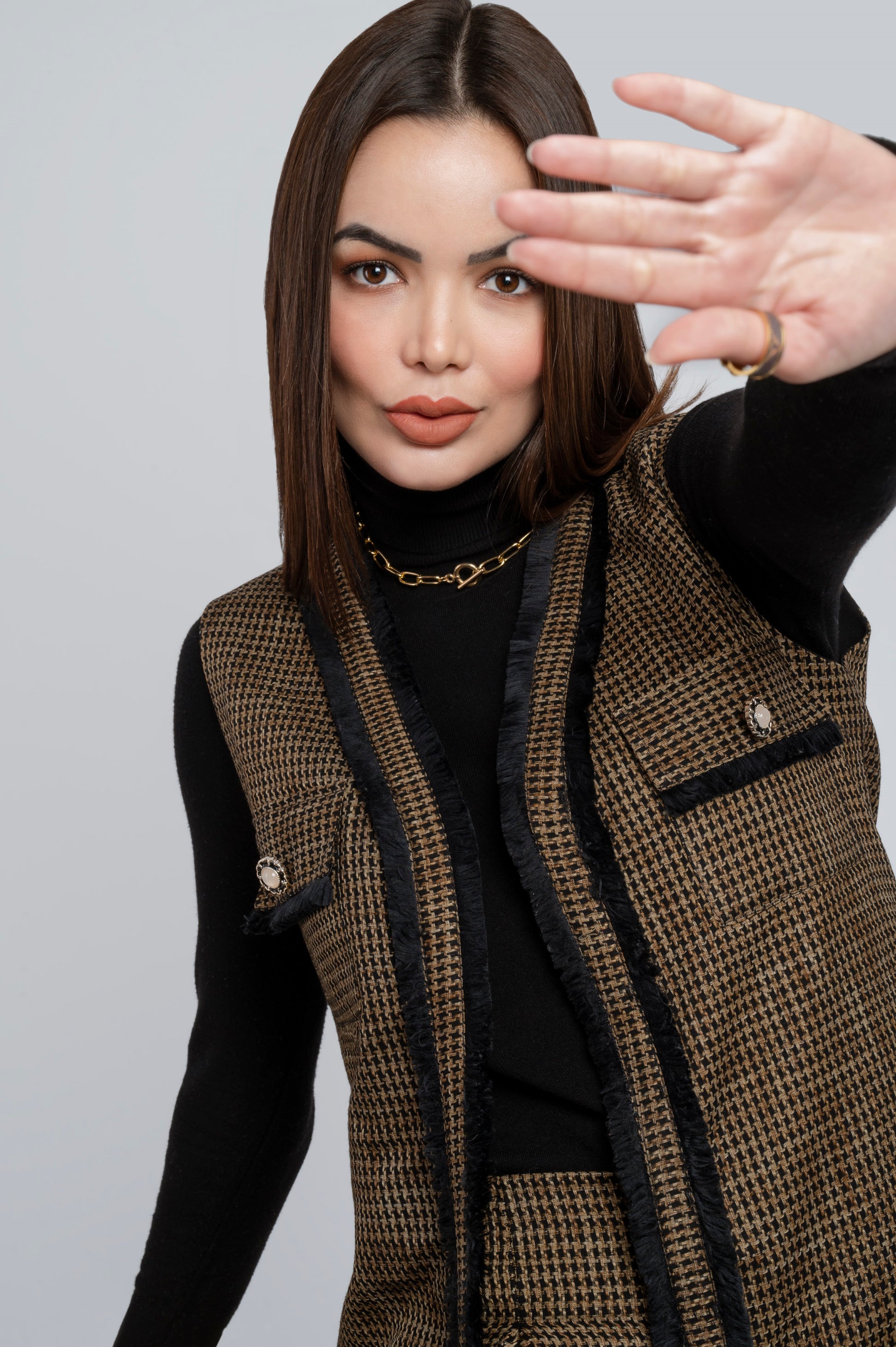 Vest Cut sleeves Blazer with Slim Flare Pants