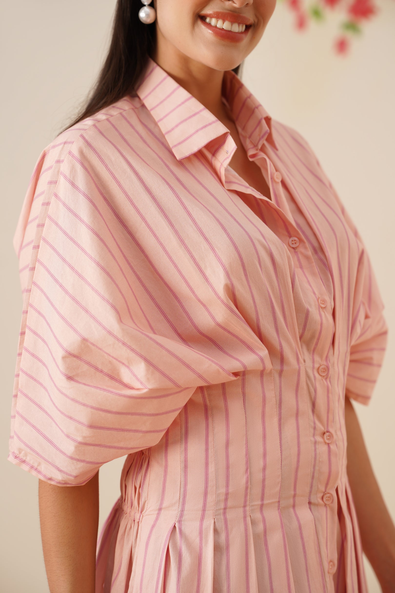 • Midi-length shirt dress with a structured yet relaxed silhouette