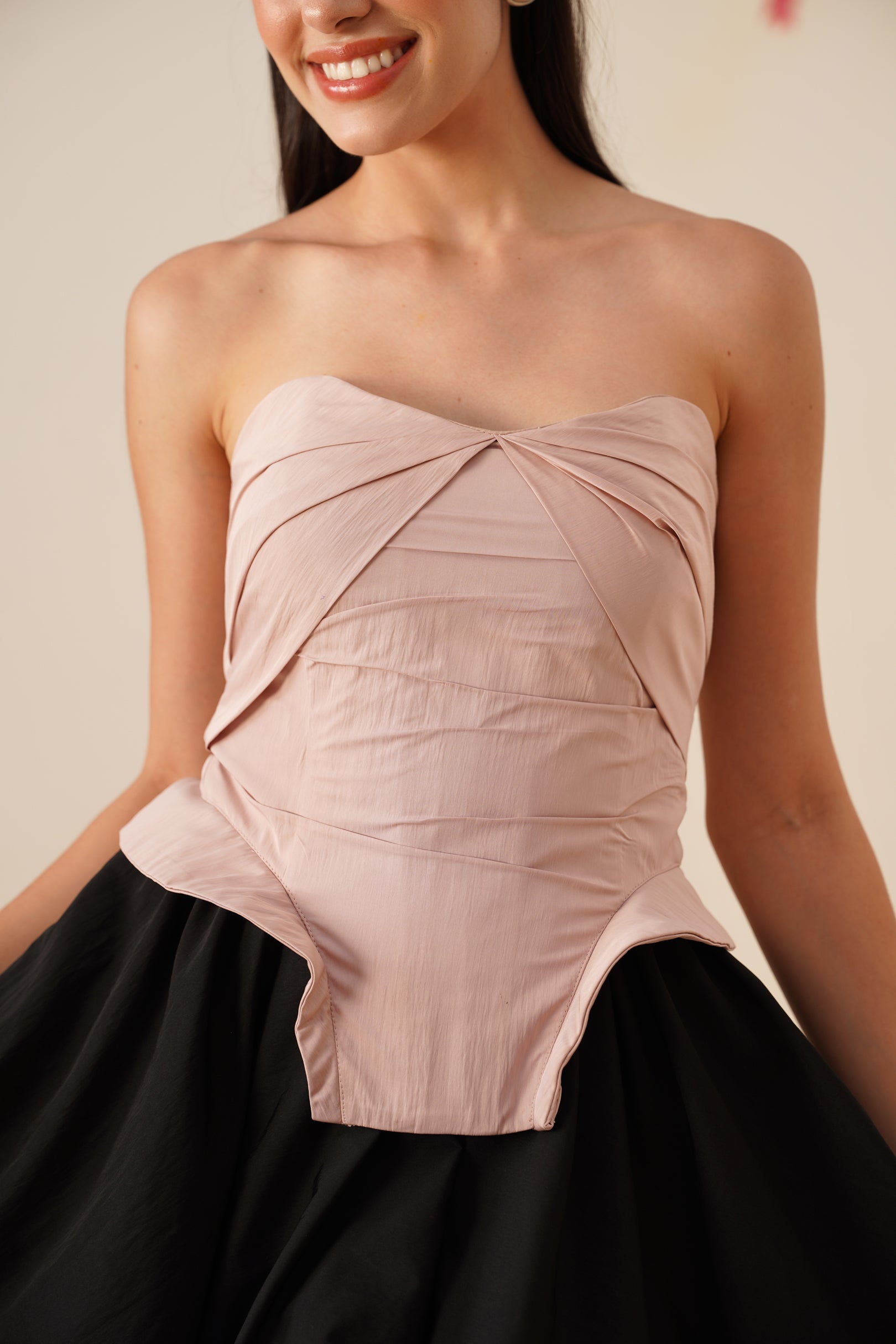 • Two-piece set: a corset top paired with a matching balloon skirt