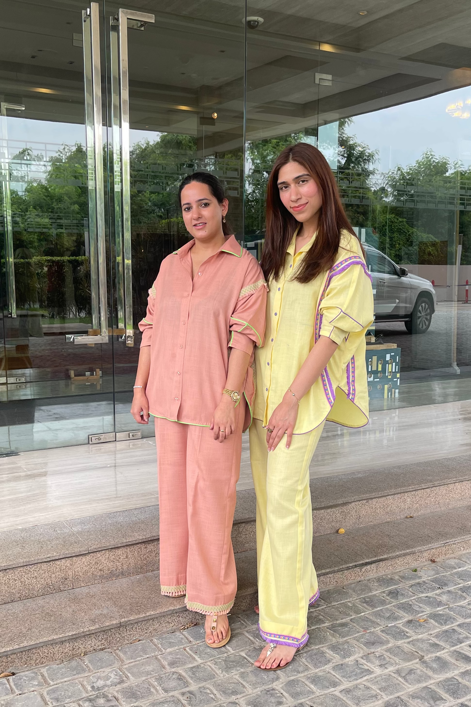 Comfortable and stylish peach-colored cotton co-ord set. Crafted with care, its soft and breathable fabric will keep you comfortable all day long. The green finishing adds a touch of freshness, making it the perfect choice for a go out yet chic look. Experience the ultimate blend of comfort and style with our peach cotton coord set.”