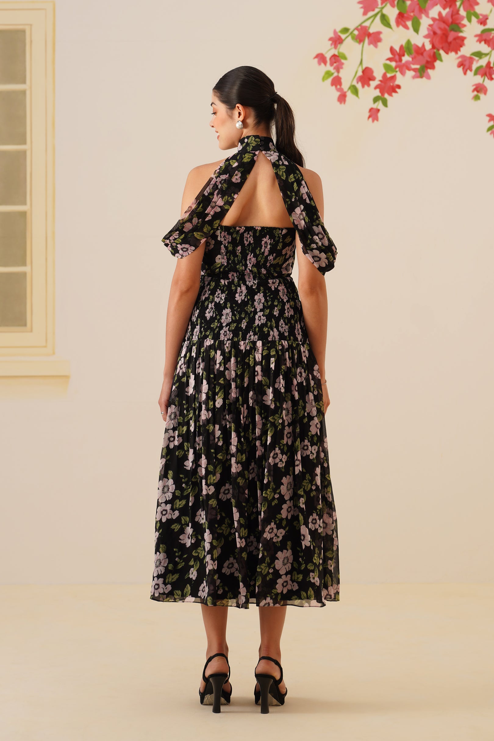• Crafted in lightweight black organza with a soft crepe lining for comfort